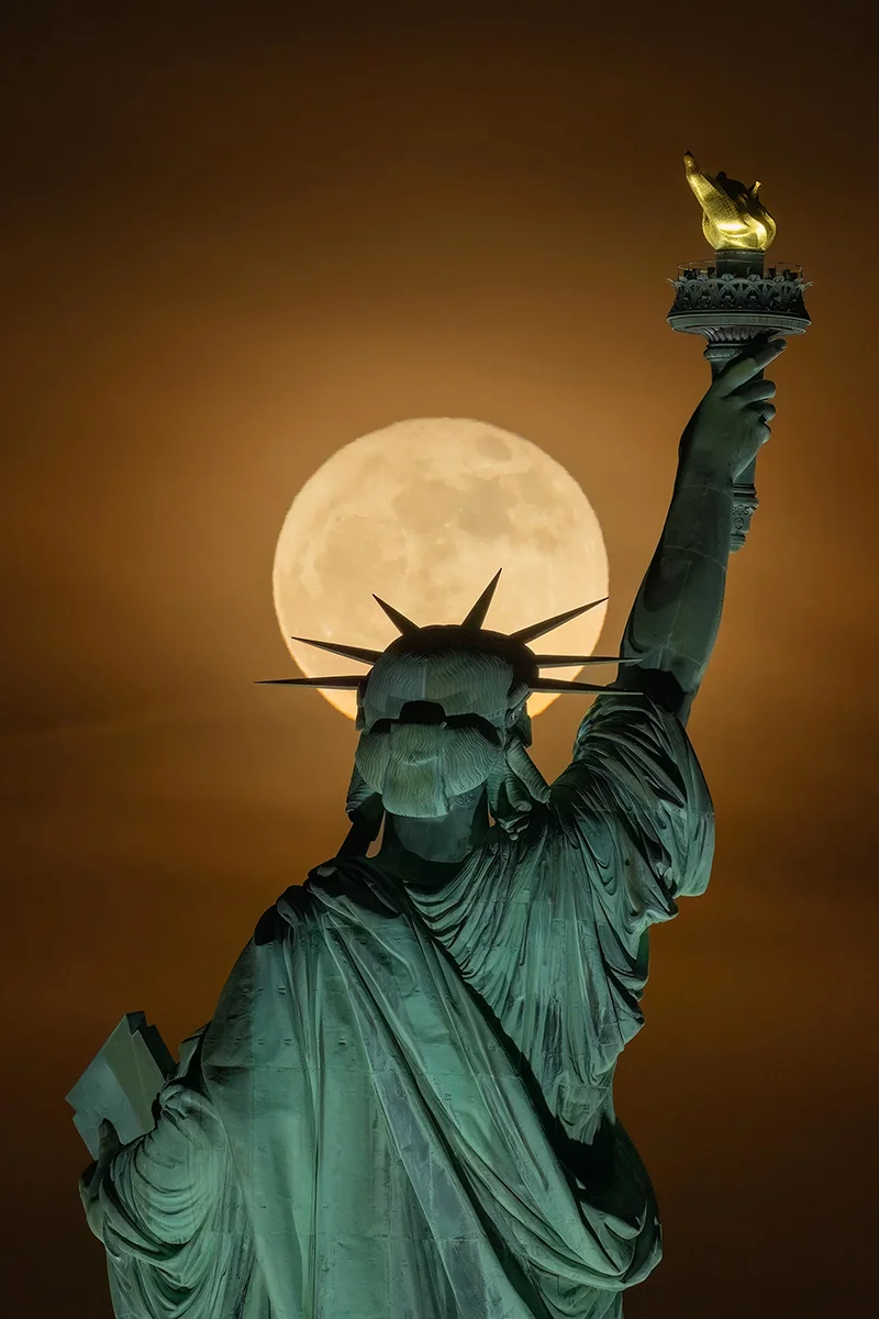 The final result is a successful Flower Moon with Lady Liberty (Image taken 5/12/2025)