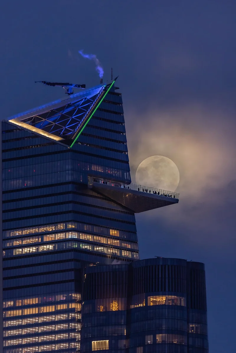 Does your next shoot have cloudy skies or wind in the forecast? Sometimes you can get a nice shot in those conditions. Don’t give up hope and head out just in case! An example is this image of the moon rising onto the Edge platform, NYC!