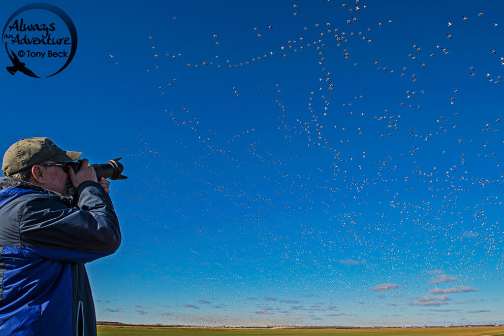 While photographing a huge flock of Greater Snow Geese in Eastern Ontario with Denis Rule, I used a wide-angle to capture the mesmerizing view of being surrounded by an overwhelming abundance of life.