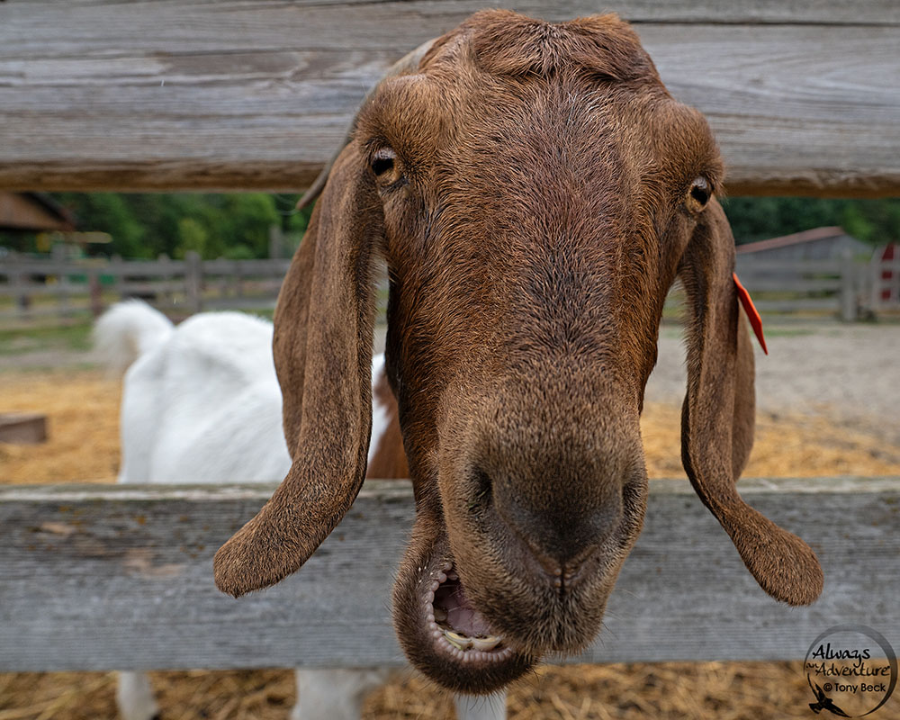 Easily approached domestic animals, like this farmyard goat, make ideal subjects for wider angles. Capturing distorted comical portraits is easy with subjects closest to your camera.