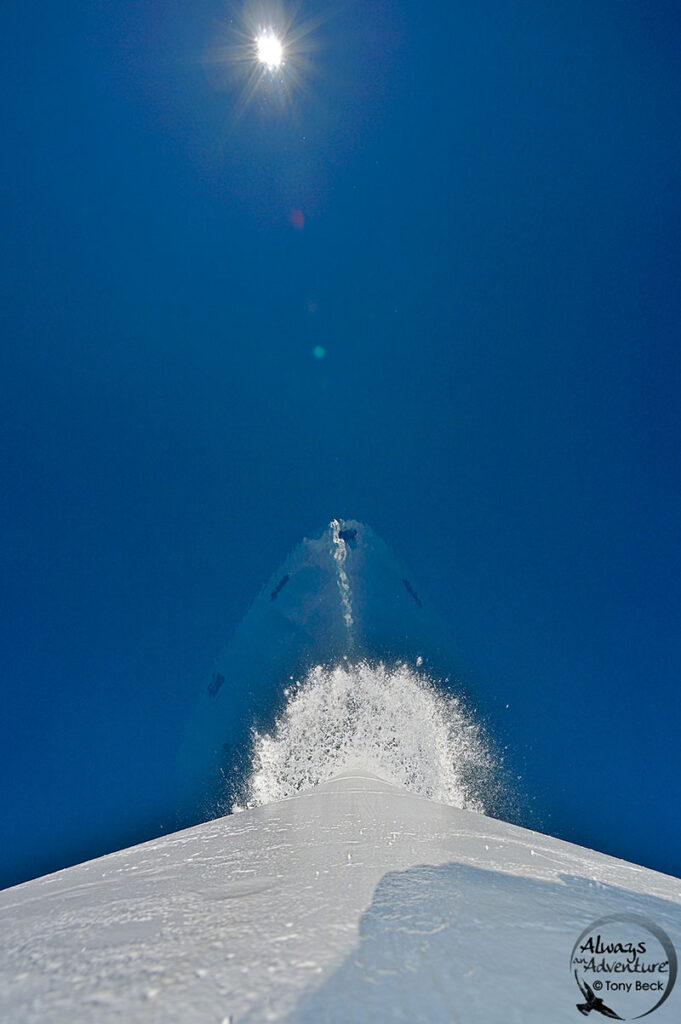 From the bow of our ship, a wide-angle was used to show a unique perspective of traveling the sea.
