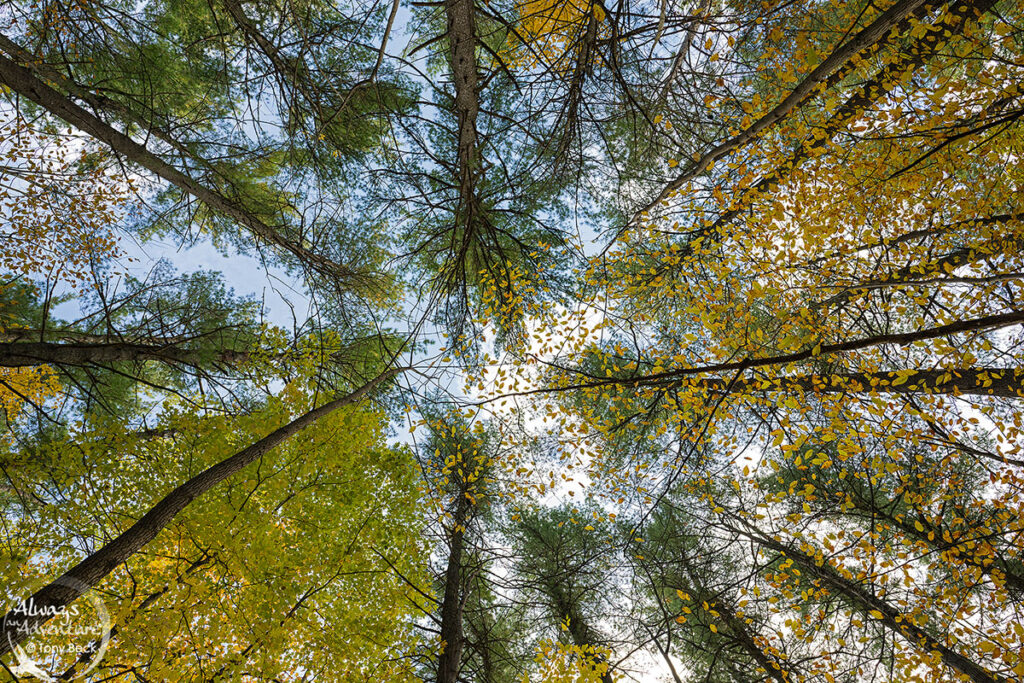 With tree trunks converging upward toward a canopy, wide-angle lenses create interesting compositions of common scenarios in nature. When walking through a forest, look up to see if the canopy contains life or has an aesthetic appeal.