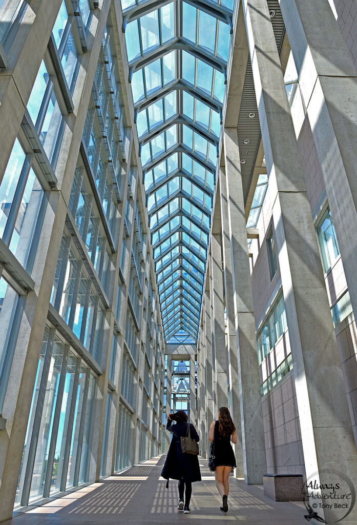 Building Interiors offer many creative challenges for wide-angle users. Sometimes vertical formats work best, especially if the scene has converging lines like this hall in Ottawa’s National Gallery.