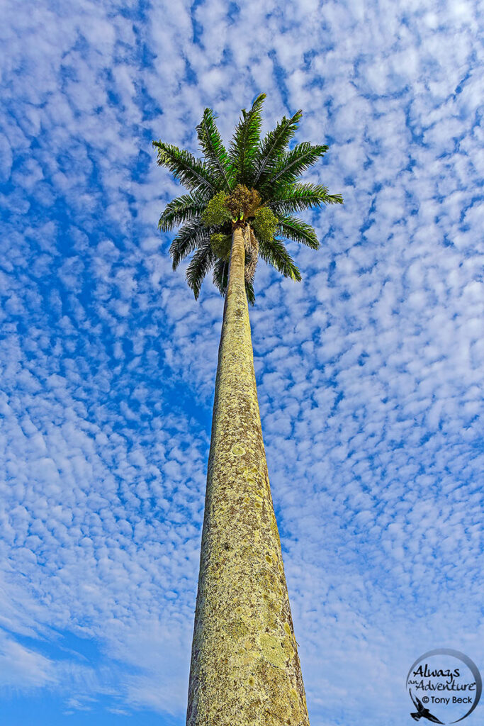 With a wide angle, this palm tree filled the frame vertically while maintaining sharpness in the distant clouds.