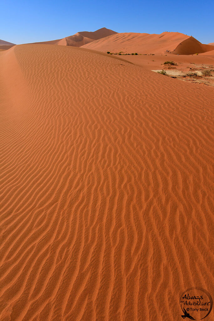 Thanks to a wide-angle lens, this vast desert scene in Namibia reveals the detailed sand texture of the foreground while keeping the horizon well defined.