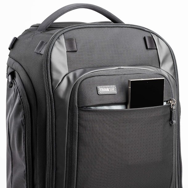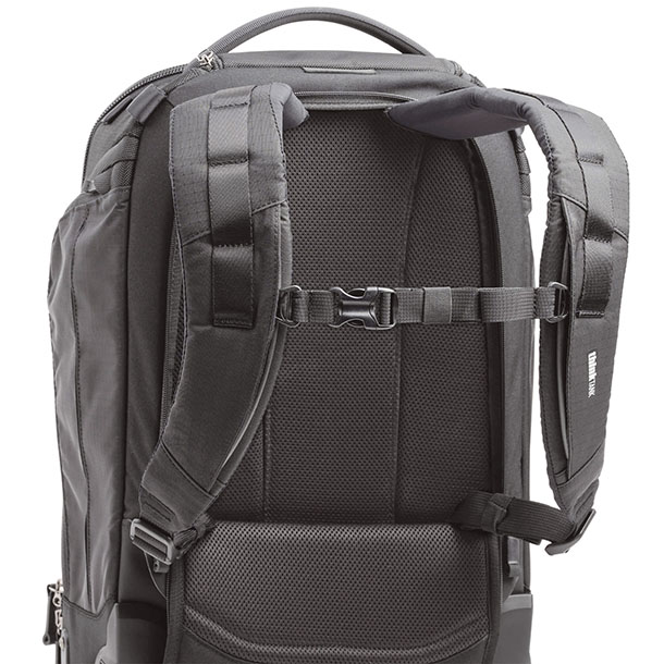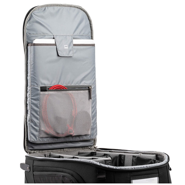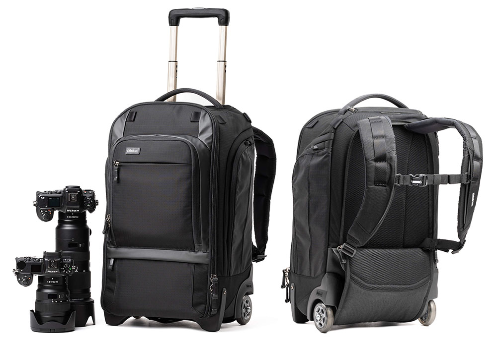 The Think Tank Walker Pro Rolling Backpack features deployable backpack straps that enable you to carry the roller on your back. It offers easy camera access, spacious pockets for gear and personal items, and a padded sleeve for a laptop or tablet.