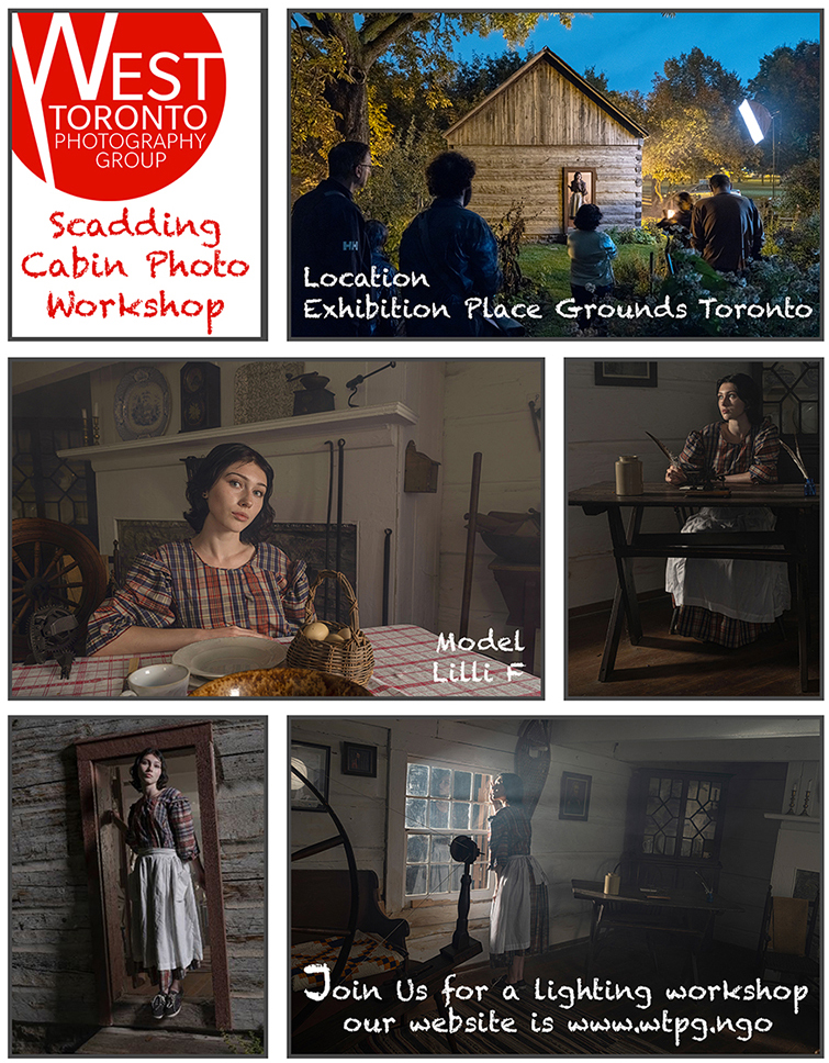 Last month, I had the amazing opportunity to host a very special photography lighting workshop inside the Scadding Cabin at Exhibition Place. It was a real honour to lead the very first lighting workshop ever held in this historic space. The West Toronto Photography Group is trying to find new and unique locations in the city of Toronto to hold community based photography lighting workshops.