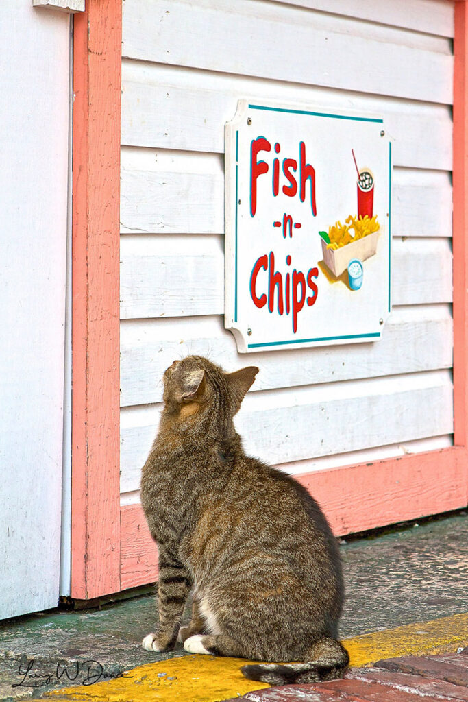 The Sign – Southern travel moment: a patient cat waiting for fish. Story told.